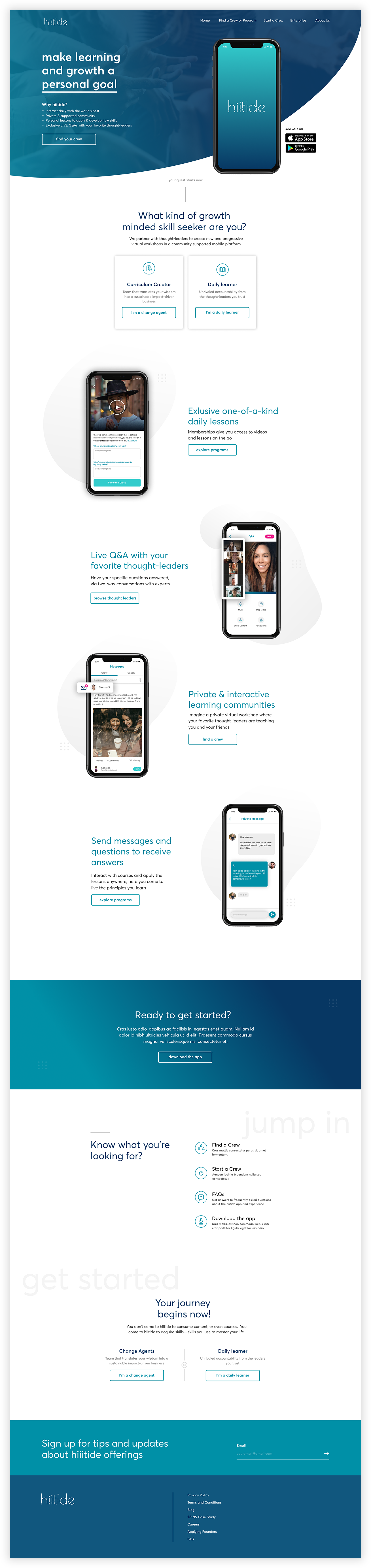 When I met Evan, CEO of hiitide, he was radiate and smiling. His passion for helping others grow and learn was equivalent to the passion he had for the company, hiitide, that he started. Upon diving into some redesigns for him, we realized there was a need to modernize their digital look and tell a stronger and concise story. So we started with their marketing landing page and homepage.